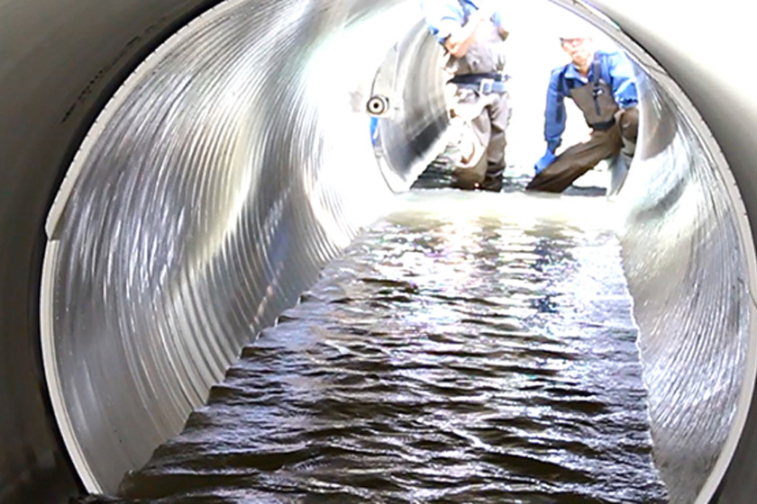 下水道工事測量設計業務委託特記仕様書に従い、委託対象箇所において直接地面を掘削して下水道管やマンホールなどを埋設する開削工法や、老朽化した管を改築する更生工法を計画して行います。