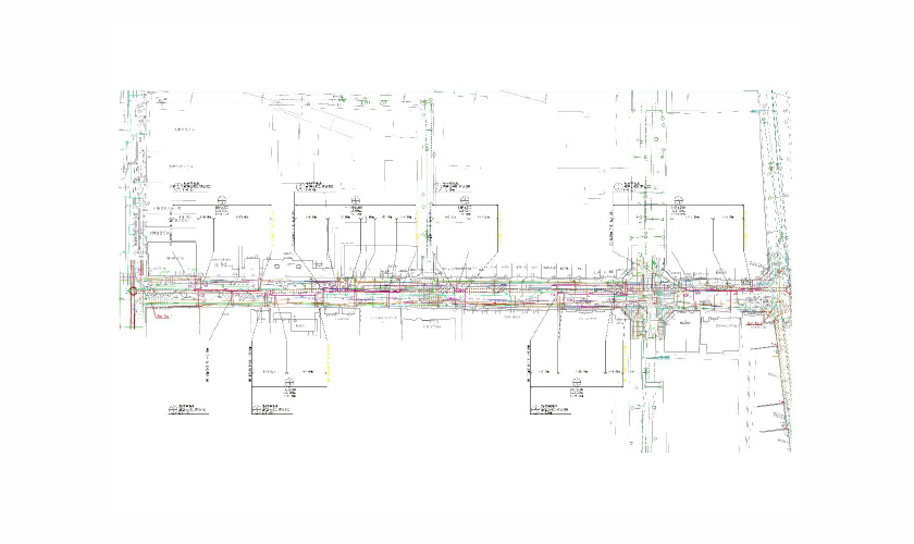 下水道工事測量設計業務委託特記仕様書に従い、委託対象箇所において直接地面を掘削して下水道管やマンホールなどを埋設する開削工法や、老朽化した管を改築する更生工法を計画して行います。